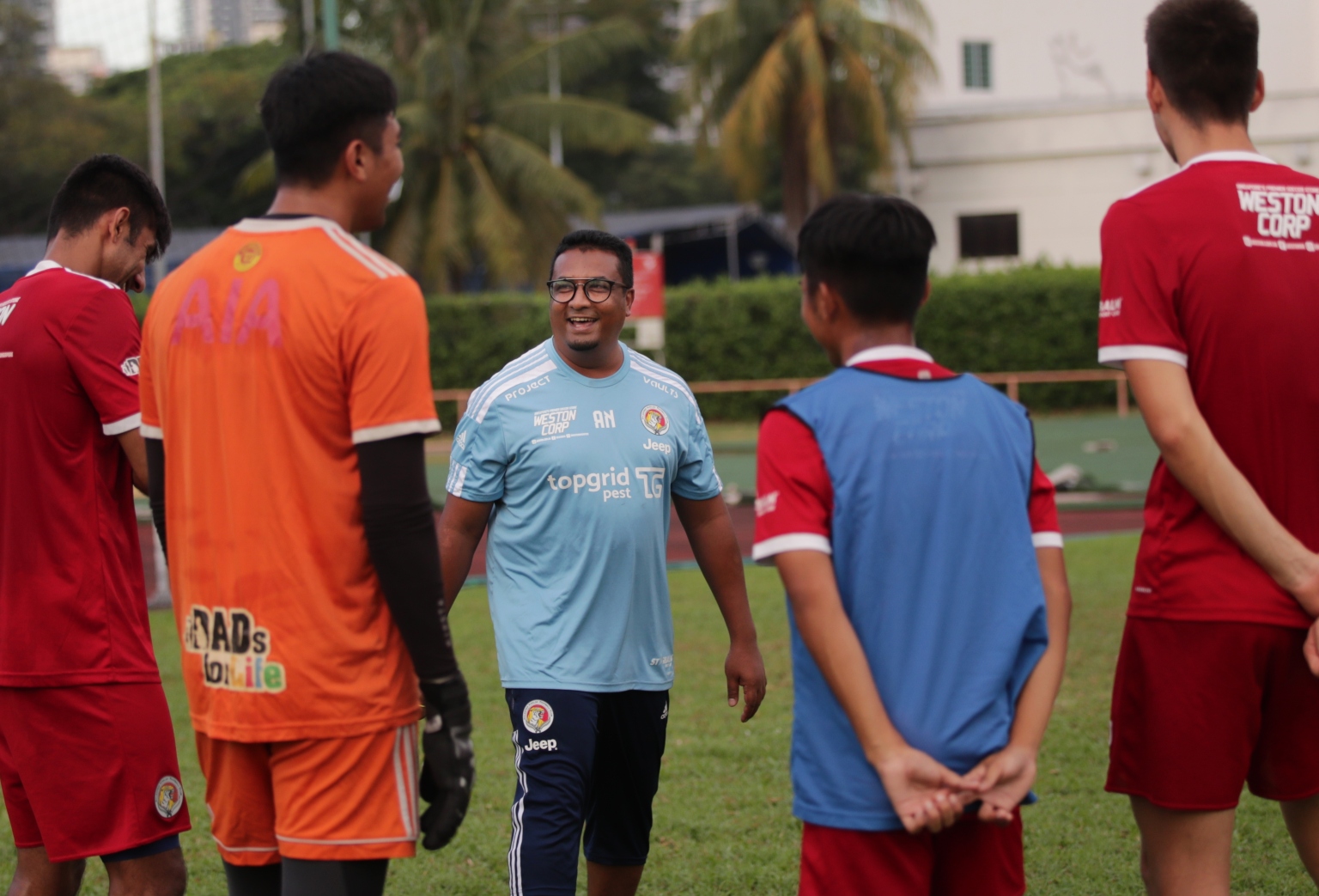 Coach Akbar Nawas (centre) instructing players in training at Toa Payoh Stadium on Feb 22, 2022.