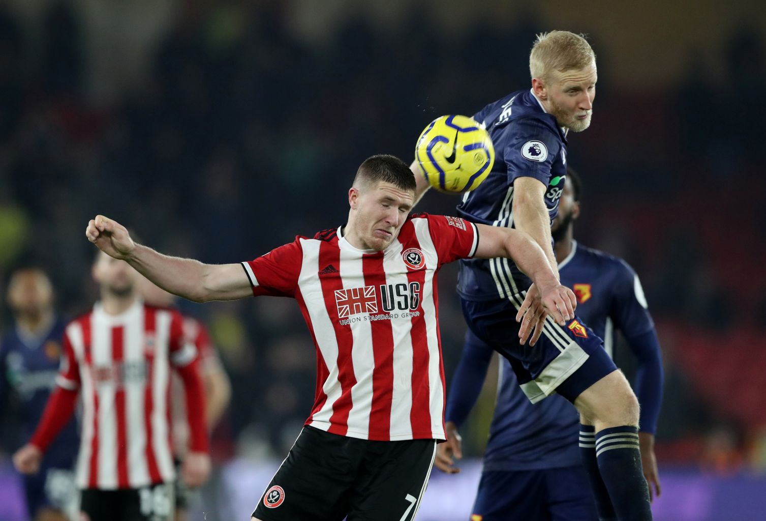 Sheffield United's John Lundstram in action with Watford's Will Hughes.
