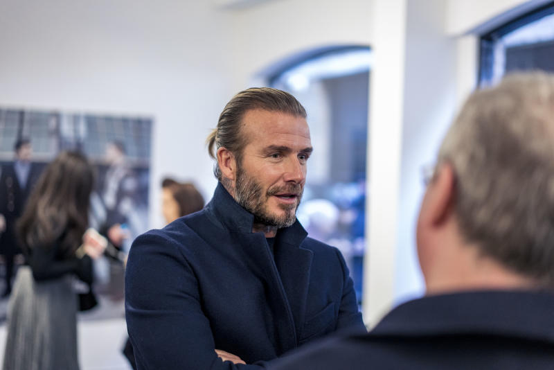 David Beckham at the Kent & Curwen preview at London Fashion Week Men’s, on Jan 7, 2018.