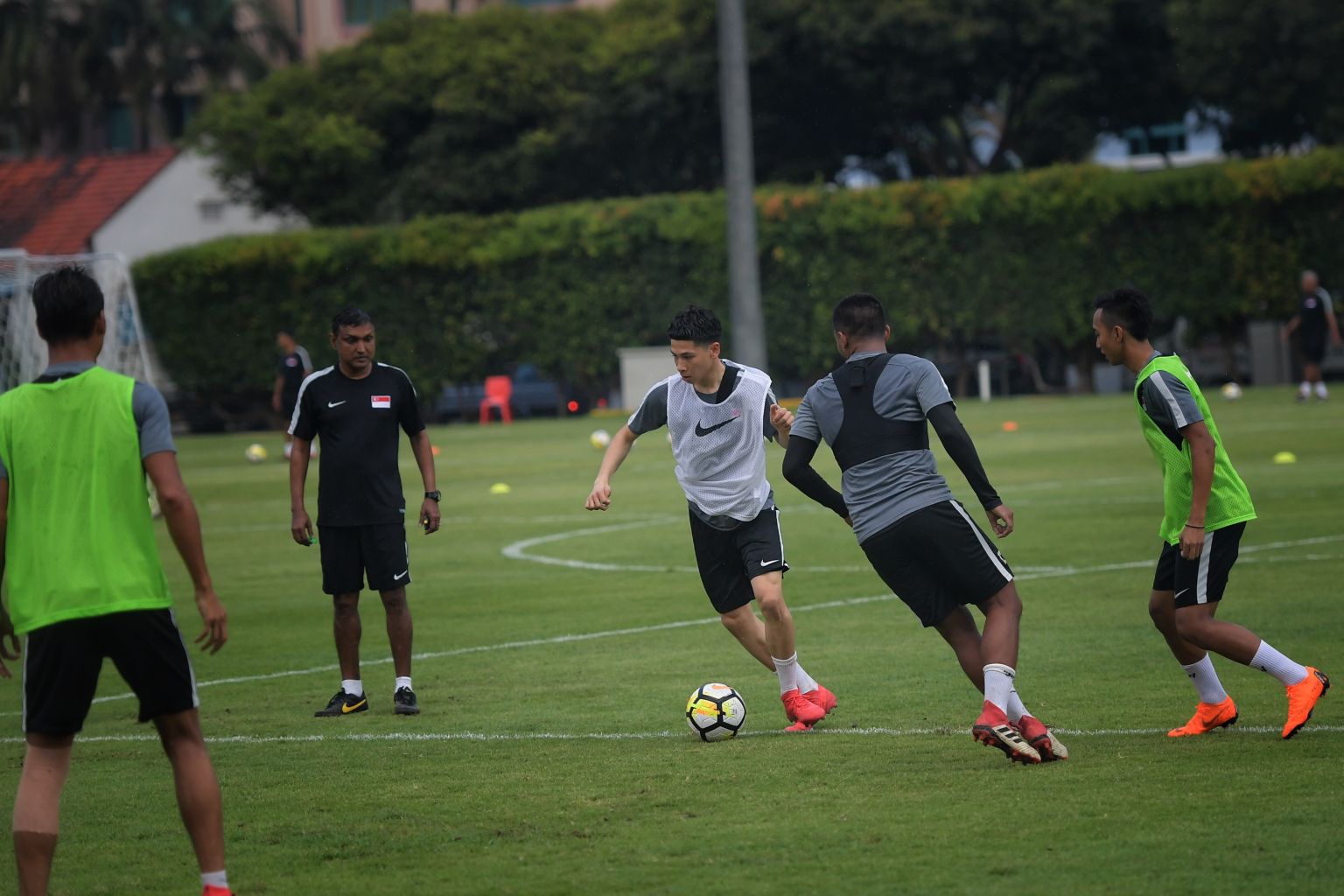 Ben Davis on the ball during Singapore national football team training in March 2018 under then national coach V. Sundram Moorthy.