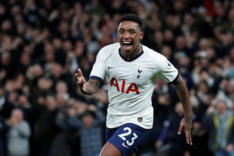 Tottenham Hotspur's Steven Bergwijn celebrates scoring their first goal against Manchester City, on Feb 2, 2020.