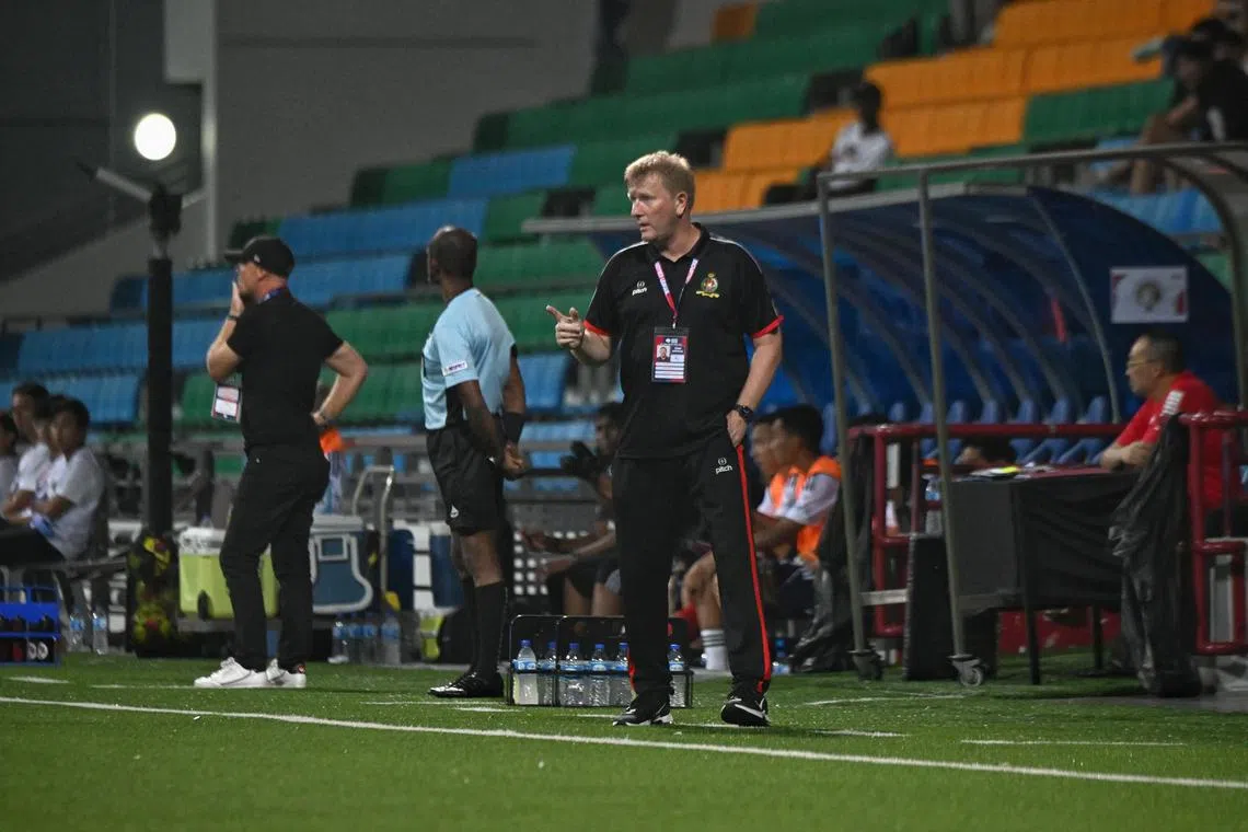 Brunei DPMM head coach, Adrian Pennock, during the Singapore Premier League match between Brunei DPMM and Balestier Khalsa at Jalan Besar Stadium on Mar 10, 2023.