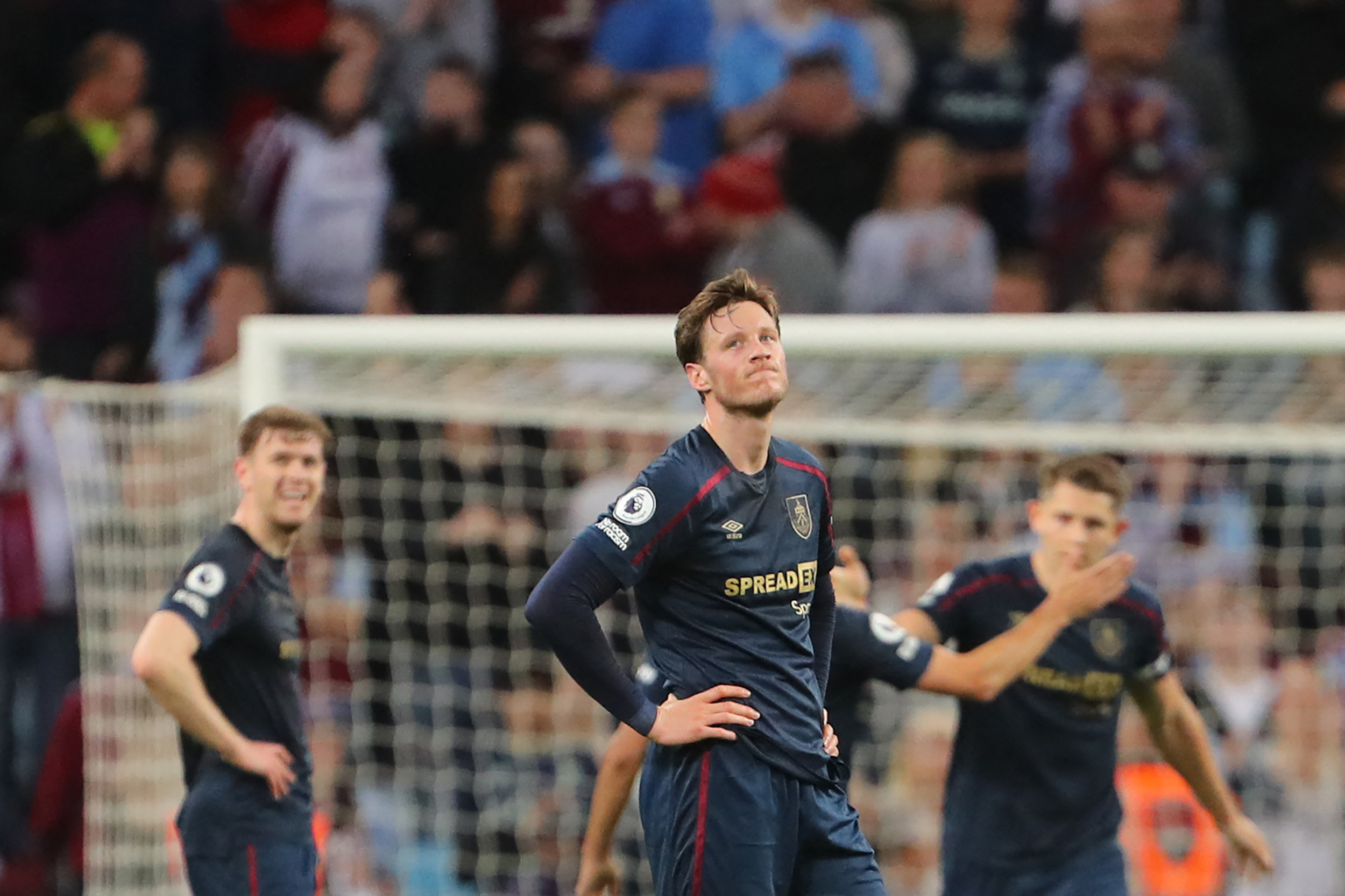 Burnley's Dutch striker Wout Weghorst reacts at the end of the match.
