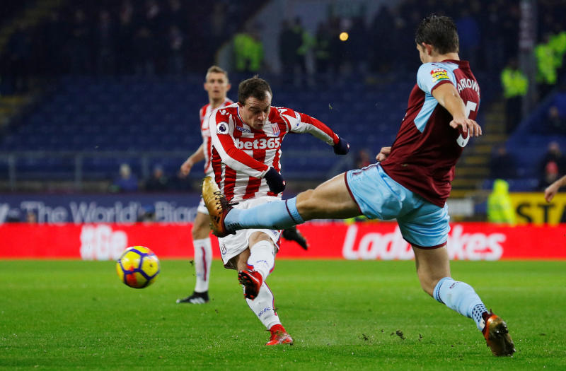 Stoke City's Xherdan Shaqiri shoots at goal at the Burnley vs Stoke City match in Turf Moor, Burnley, Britain on Dec 12, 2017.