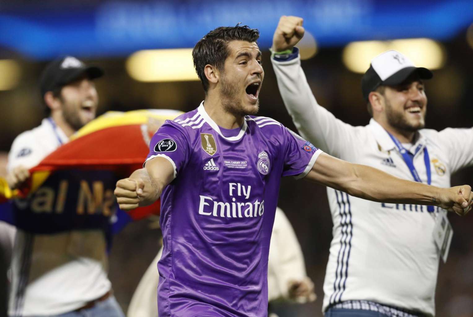 Real Madrid's Alvaro Morata celebrates after winning the Uefa Champions League.