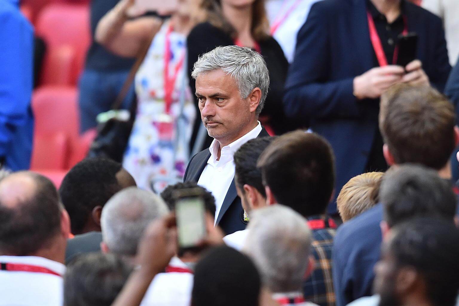 Manchester United's manager Jose Mourinho reacts after receiving his runners up medal on May 19, 2018.