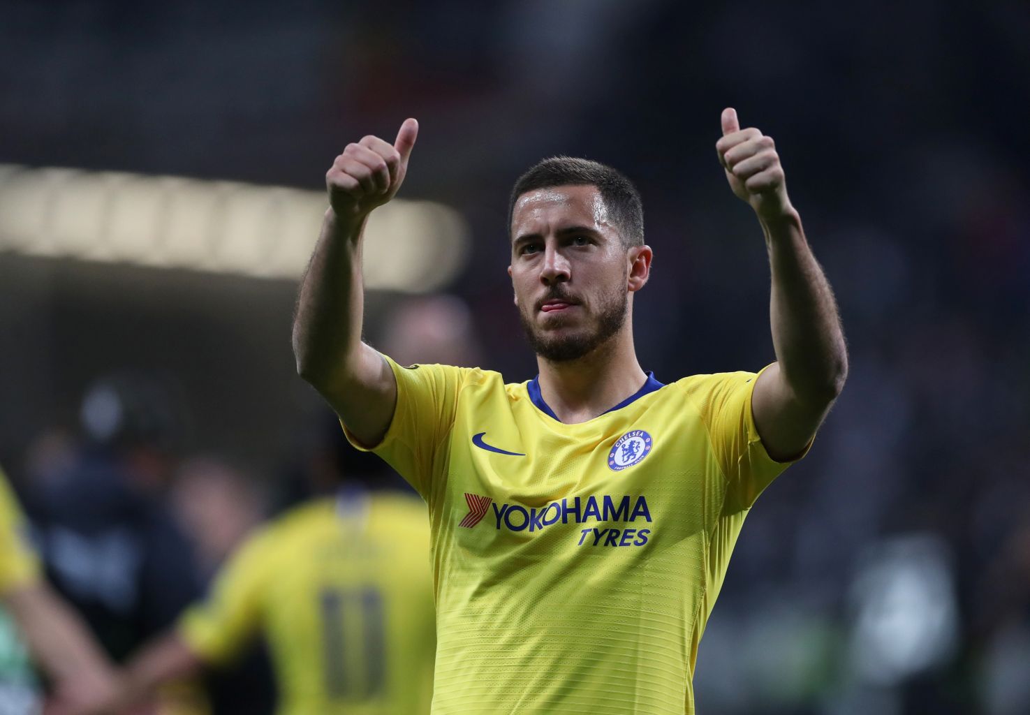 Chelsea's Eden Hazard gestures to the fans at the end of the match.