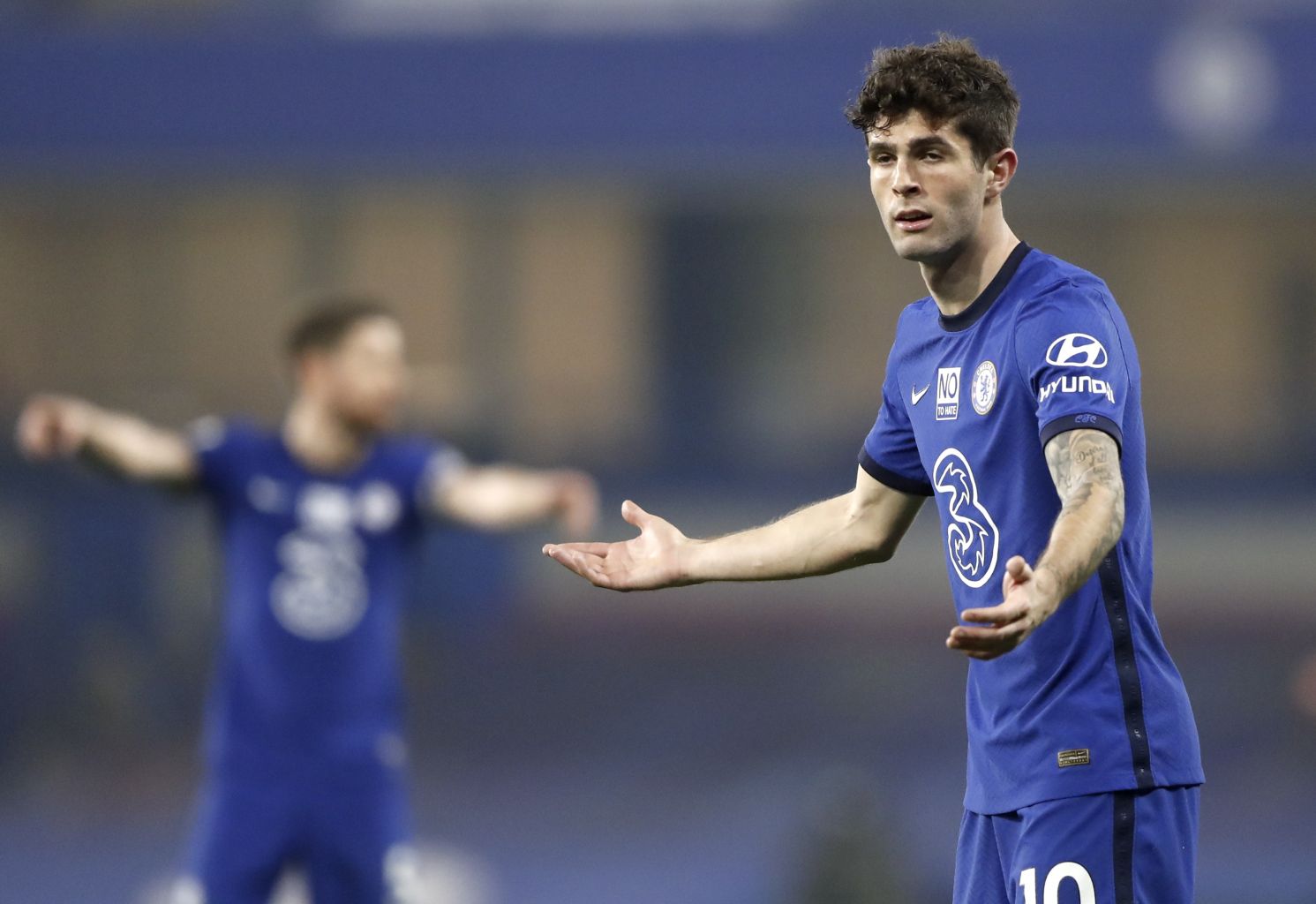 Chelsea's Christian Pulisic (right) reacts during the match.