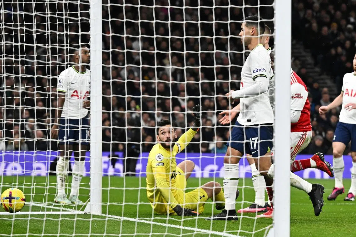 Tottenham Hotspur’s Hugo Lloris scores an own goal and Arsenal’s first.