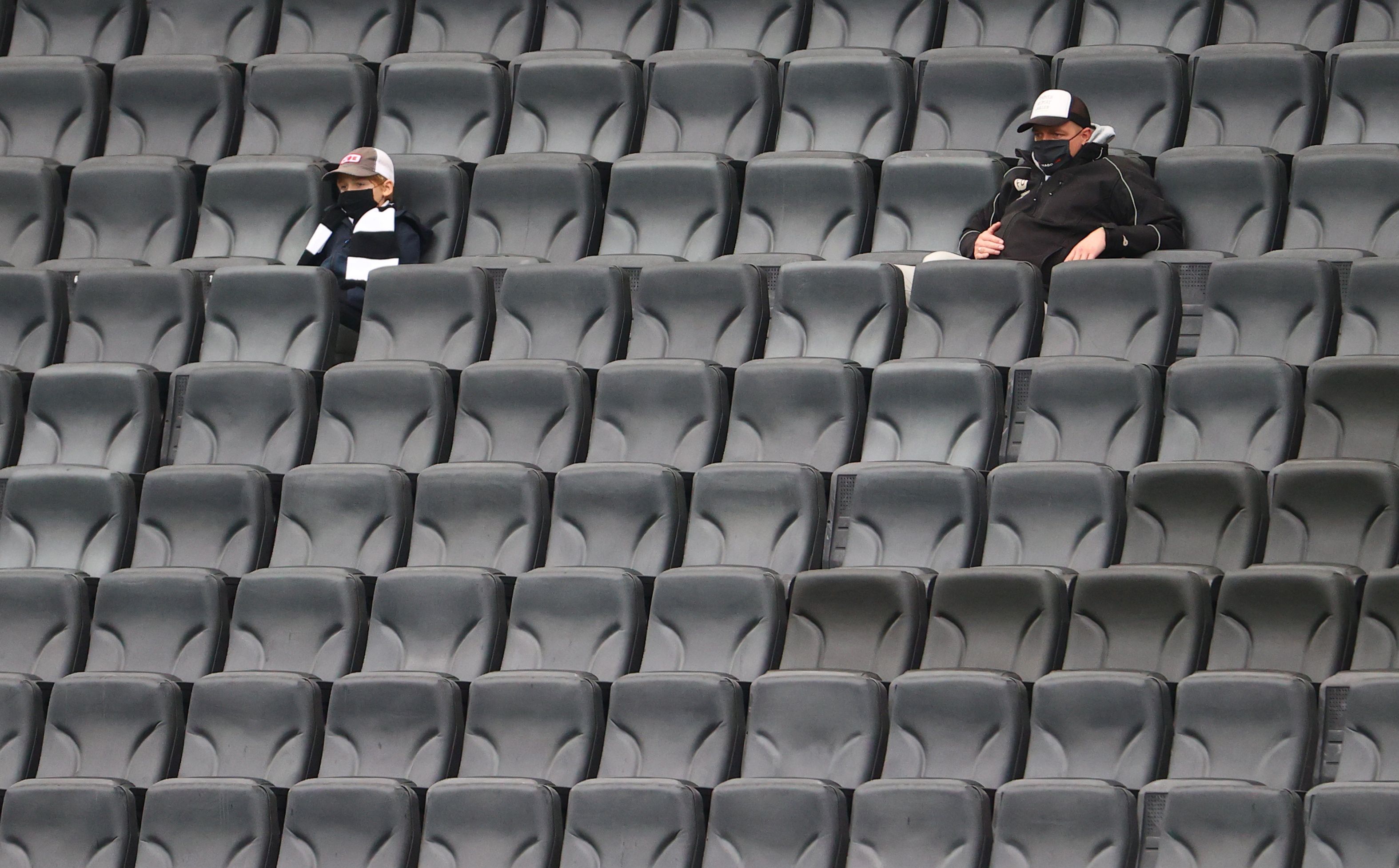 Fans practising social distancing in the stands in Frankfurt, Germany, on Oct 3, 2020.