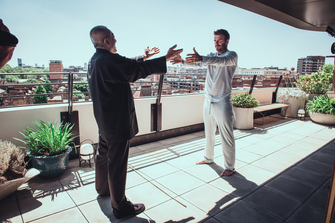 As part of the AIA Live event aimed at promoting health and wellness, Beckham learnt about the centuries-old Chinese martial art of taiji from grand master Tsu.