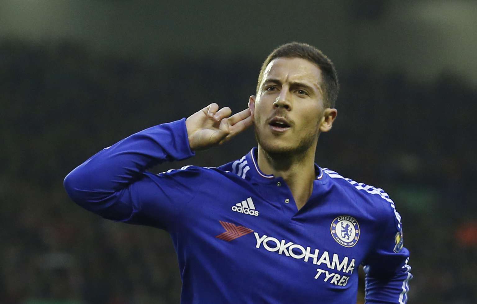 Eden Hazard celebrates after scoring the first goal for Chelsea.