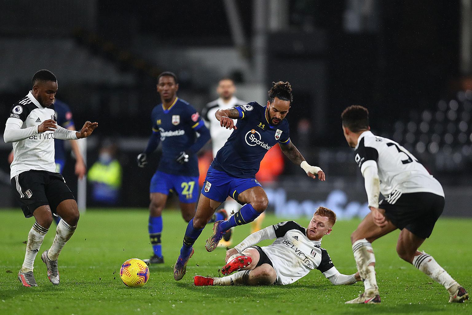 Southampton's Theo Walcott fights for the ball with Fulham's Harrison Reed in London on Dec 26, 2020.