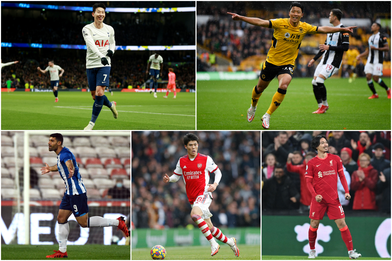 (Clockwise from top left) Tottenham Hotspur's Son Heung-min, Wolves' Hwang Hee-Chan, Liverpool's Takumi Minamino, Arsenal's Takehiro Tomiyasu and Porto's Mehdi Taremi.