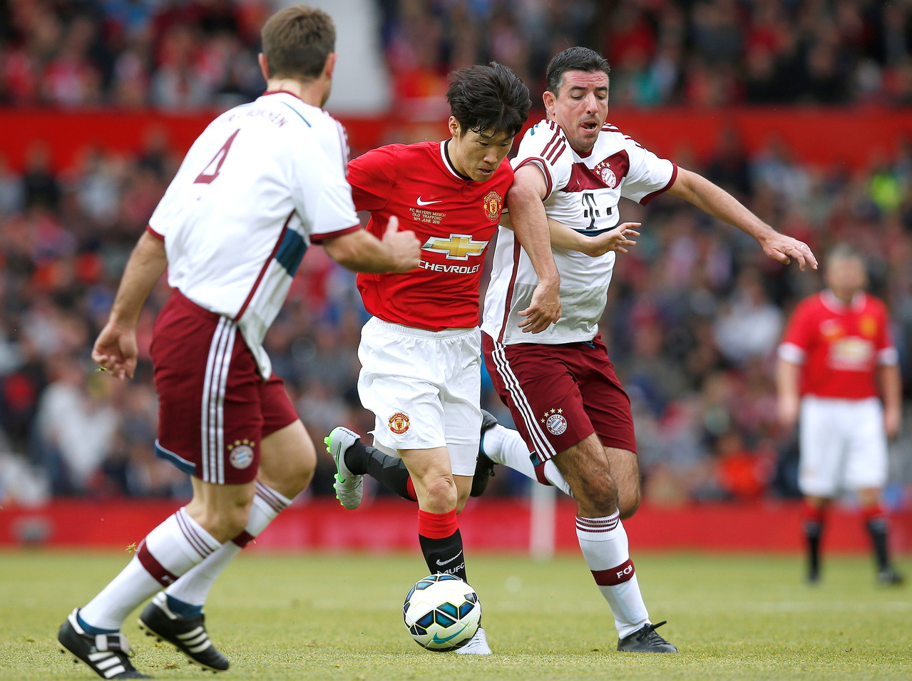 <p>FILE PHOTO: Football - Manchester United Legends v Bayern Munich All Stars - Old Trafford - 14/6/15 Manchester United Legend Ji Sung Park in action against Bayern Munich All Stars Roy Makaay (R) Reuters / Andrew Yates Livepic/File Photo</p>