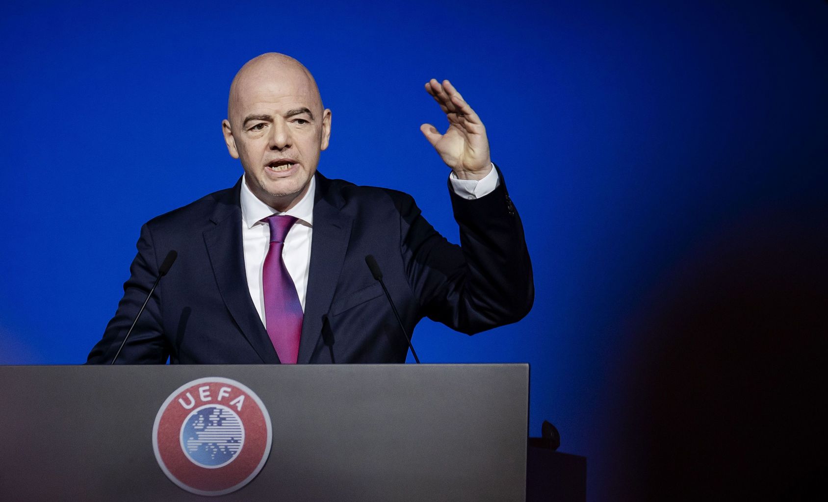 Fifa president Gianni Infantino gestures as he speaks during an event on March 3, 2020.