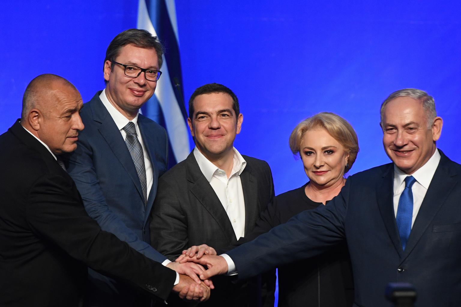 (From left) Bulgarian Prime Minister Boyko Borissov, Serbian President Alexander Vucic, Greek Prime Minister Alexis Tsipras, Romanian Prime Minister Viorica Dancila and Israeli Prime Minister Benjamin Netanyahu at a quadrilateral summit in Varna, Bulgaria, on Nov 2, 2018.