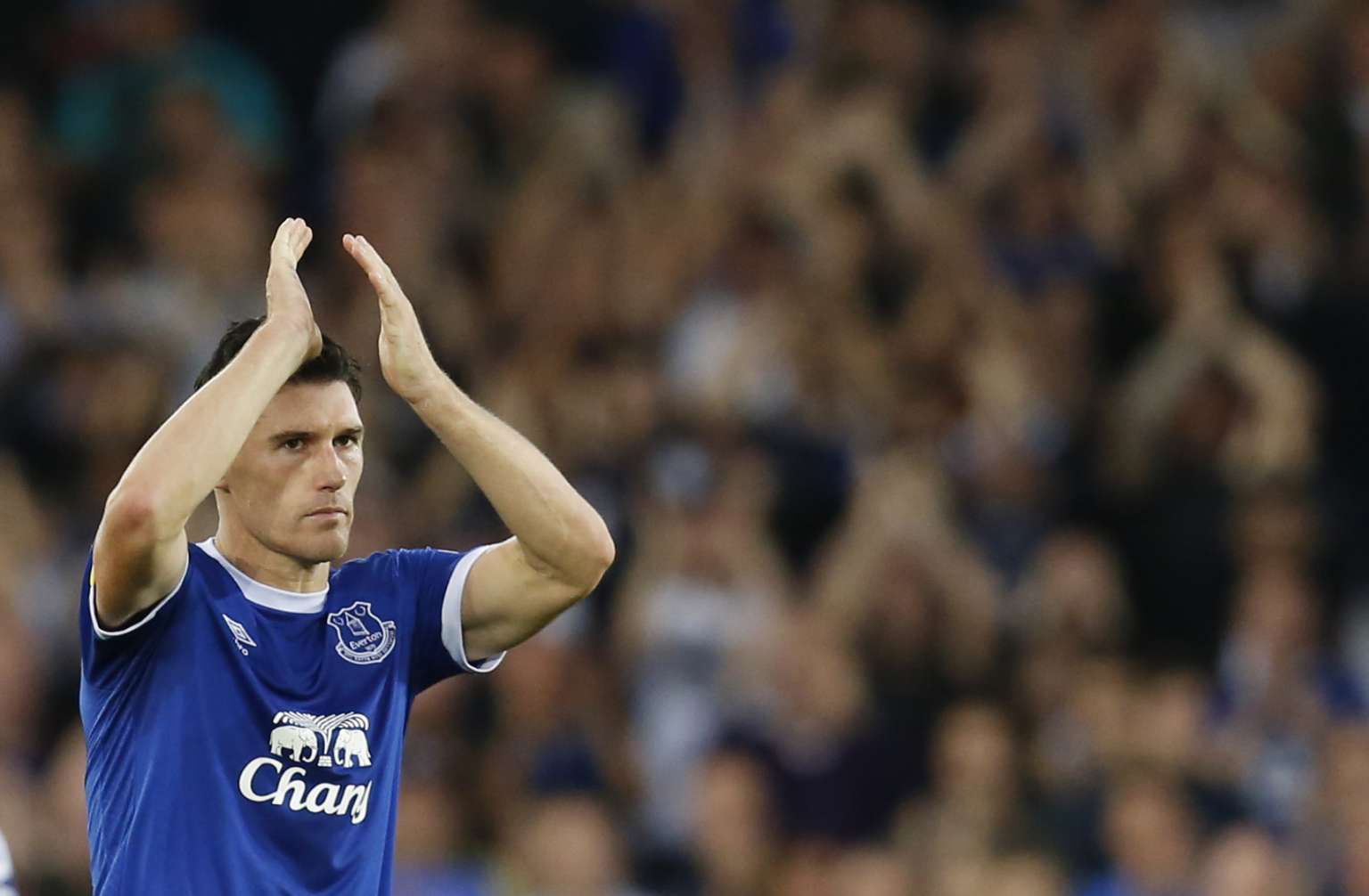 Everton's Gareth Barry applauds the fans as he is substituted.