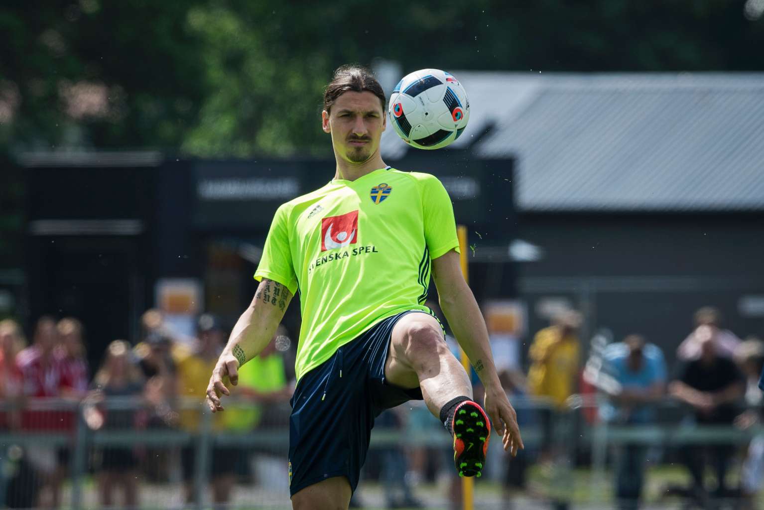 Sweden's forward and team captain Zlatan Ibrahimovic attends a training session in Bastad, Sweden, on June 1, 2016.