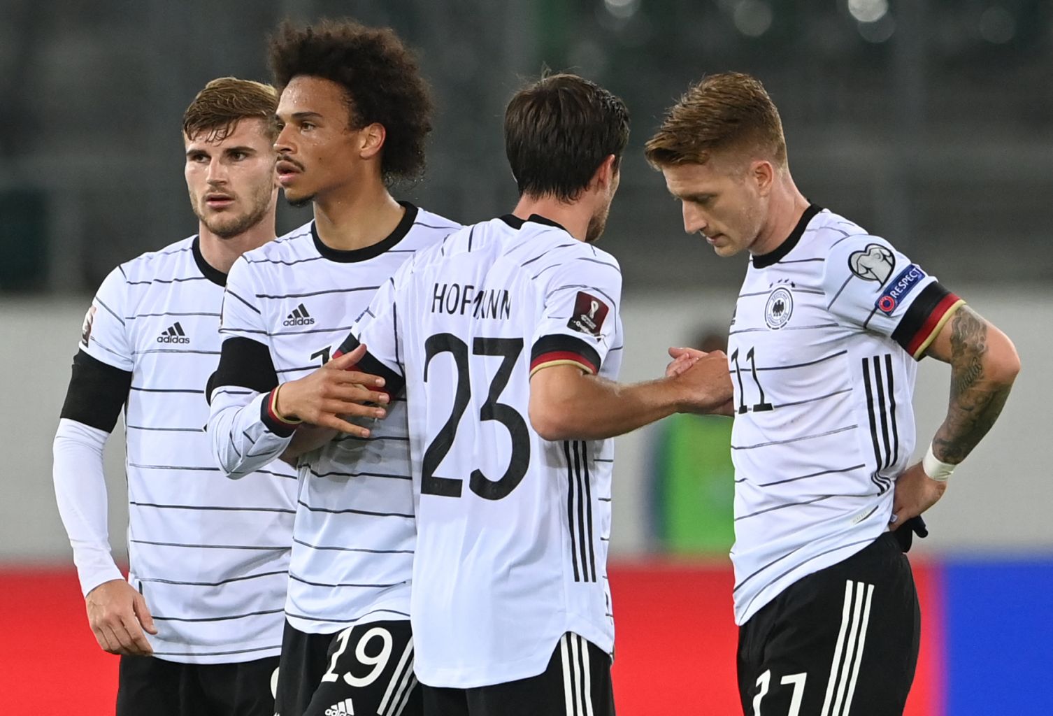 Germany's (from left) Timo Werner, Leroy Sane, Jonas Hofmann and Marco Reus react after the match.