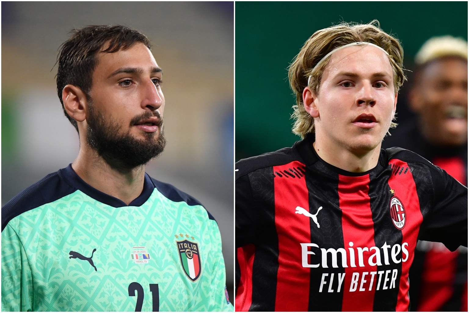 AC Milan goalkeeper Gianluigi Donnarumma (left) and winger Jens Petter Hauge have tested positive for Covid-19.