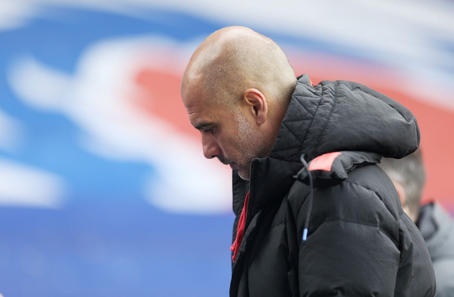 Manchester City manager Pep Guardiola walks off at half time during City's match against Crystal Palace.