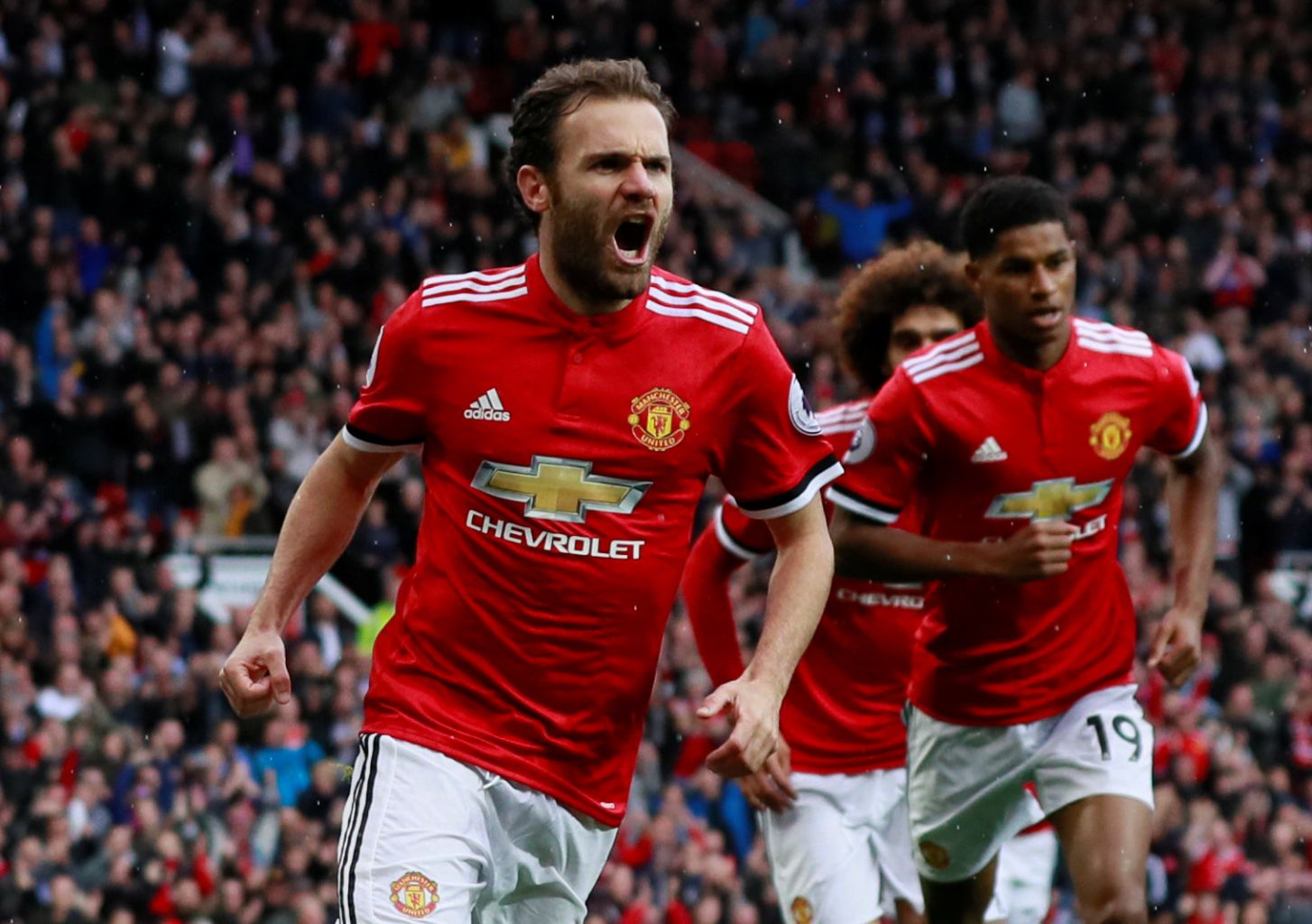 Manchester United's Juan Mata celebrates scoring a goal.