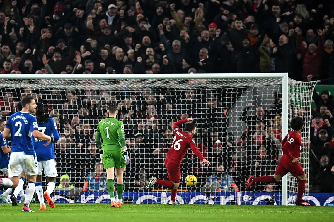 Salah opened the scoring in the 36th minute, linking up with Darwin Nunez on the counter-attack just after Everton missed a glorious double chance to take the lead.