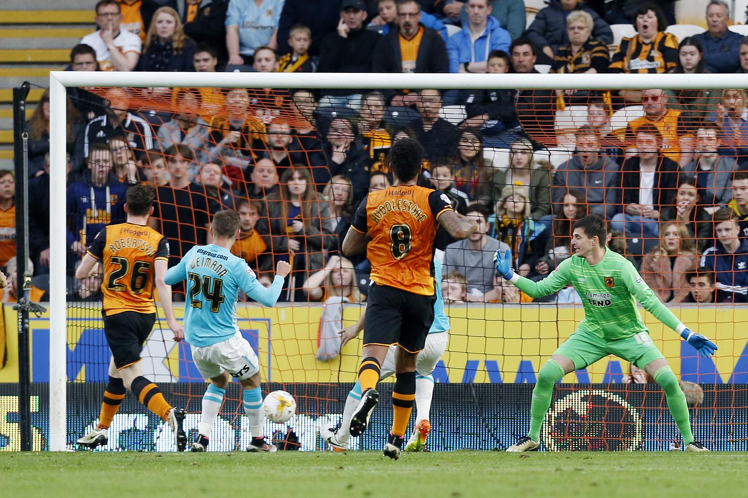 However, Craig Bryson squandered a great chance to square the tie on aggregate at the start of the second half when he failed to turn in an Andreas Weimann cross and Hull held on.