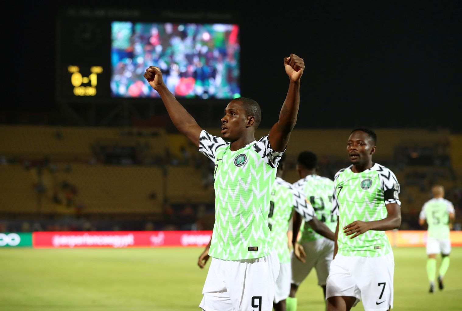 Ighalo celebrates scoring a goal for Nigeria in the Africa Cup of Nations 2019.