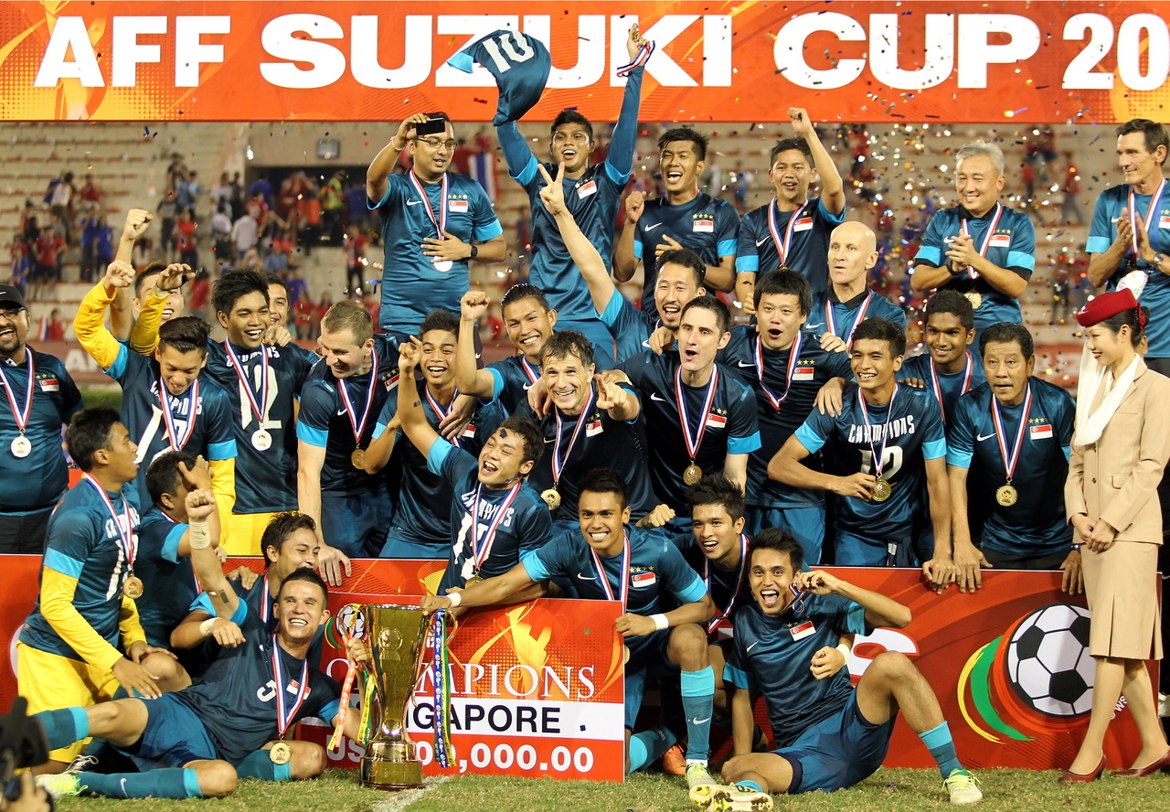 A file photo of the Singapore football team winning the AFF Suzuki Cup in 2012.