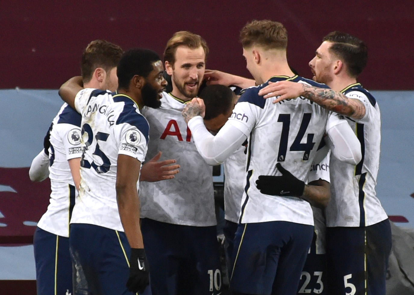 Tottenham Hotspur's Harry Kane celebrates a goal with teammates.