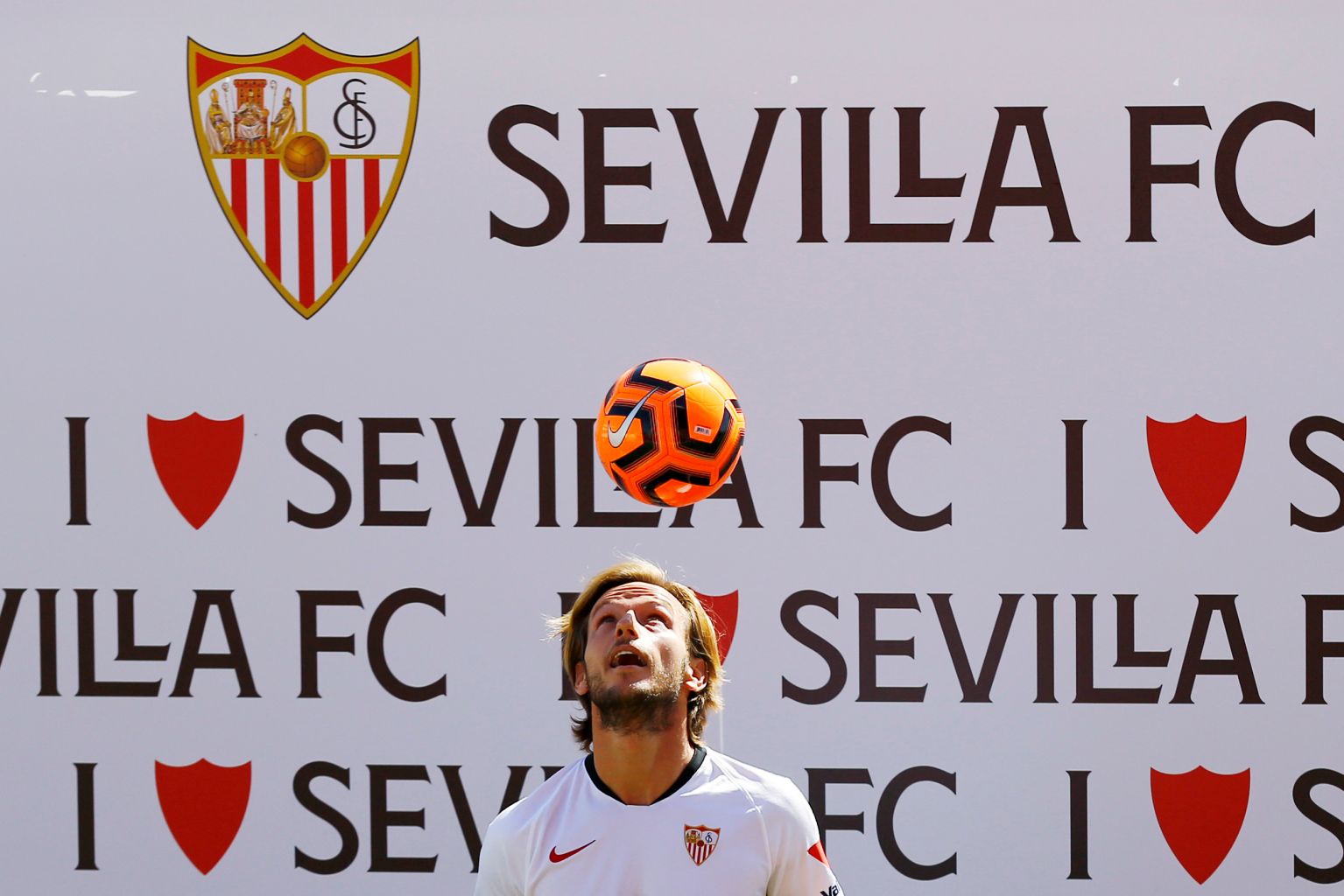 Sevilla's signing Ivan Rakitic during his official presentation in Seville, Spain on Sept 3, 2020. He had spent three seasons at Sevilla before six seasons with Barcelona. He won 106 Croatia caps and scored 15 goals, reaching the 2018 World Cup final.