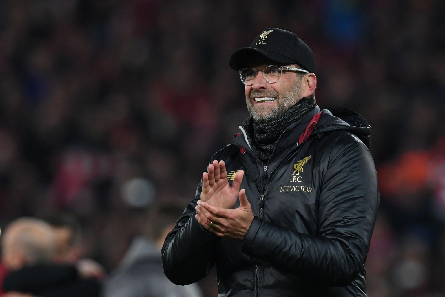Liverpool's German manager Jurgen Klopp celebrates winning the UEFA Champions league semi-final football match between Liverpool and Barcelona at Anfield in Liverpool on May 7, 2019.