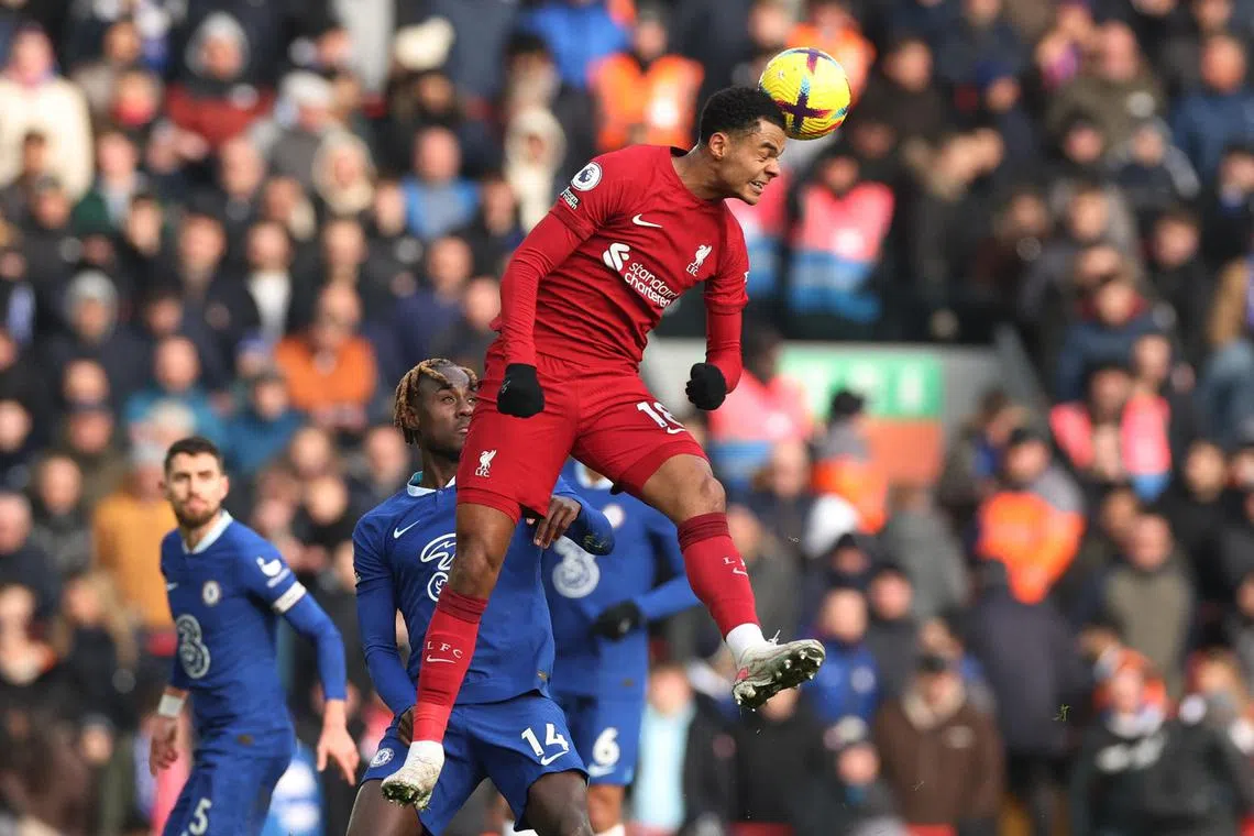 Liverpool’s Cody Gakpo in action with Chelsea’s Trevoh Chalobah.