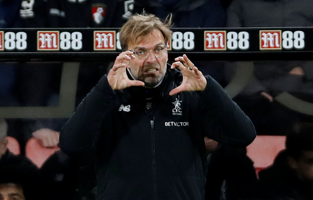 Klopp reacts during Liverpool's match against Bournemouth on Dec 17, 2017.