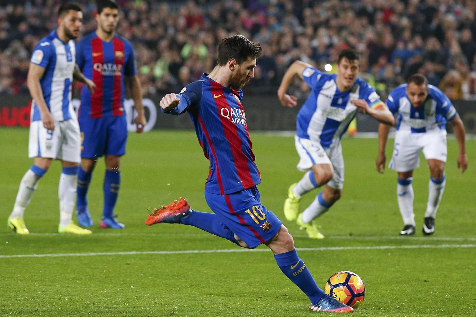 Barcelona's Lionel Messi scoring a penalty against Leganes on Feb 19, 2017.