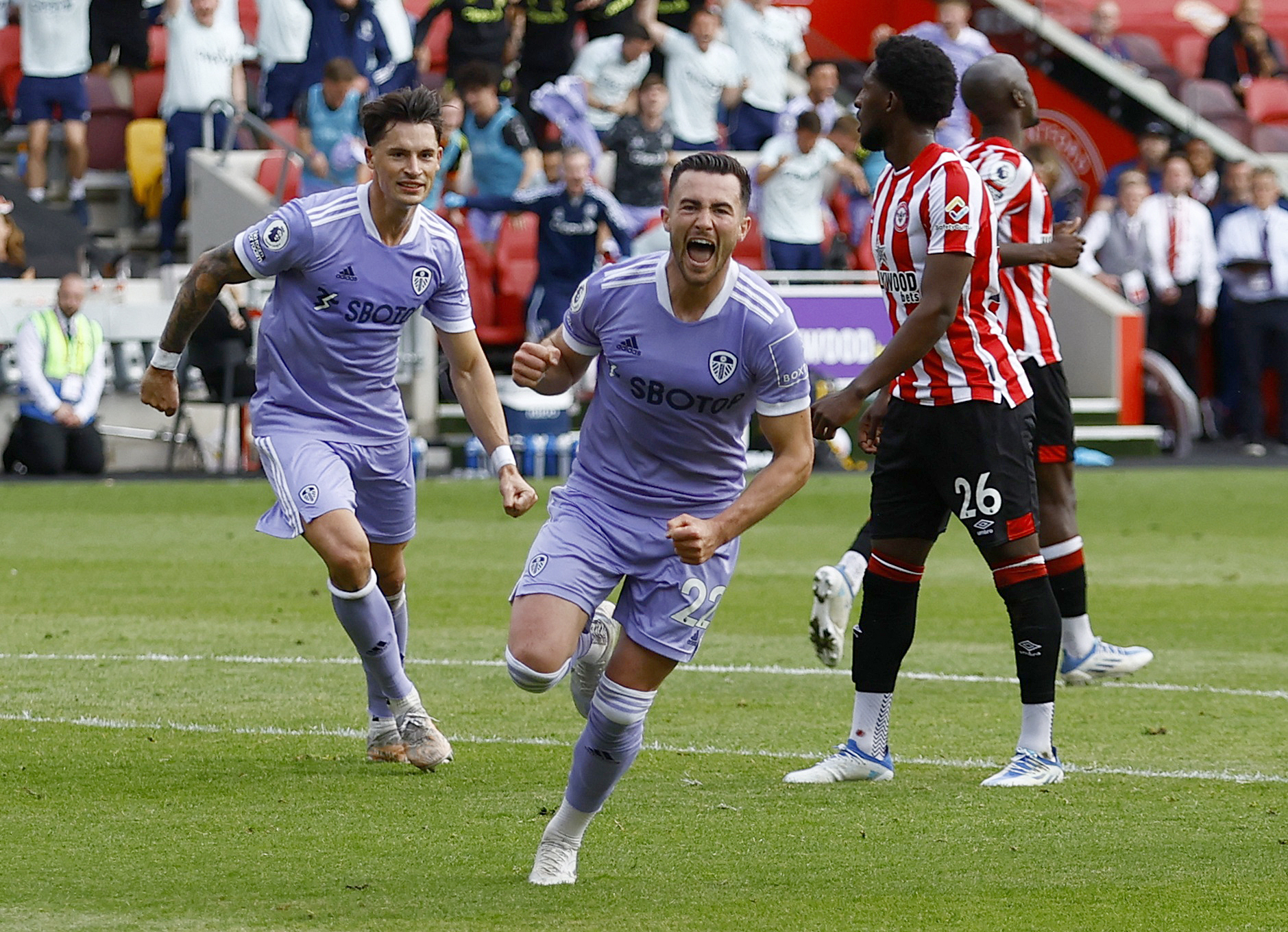 A Raphinha penalty gave Leeds a second-half lead but they conceded a goal from Sergi Canos in the 78th minute before Harrison fired home four minutes into stoppage time to spark ecstatic celebrations.