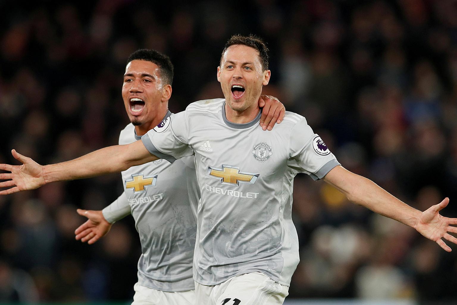 LONDON (REUTERS) - Manchester United's Nemanja Matic volleyed a stunning added-time winner as they fought back from two goals down to beat Crystal Palace 3-2 in an enthralling clash at Selhurst Park and climbed to second place in the Premier League on Monday (March 5).