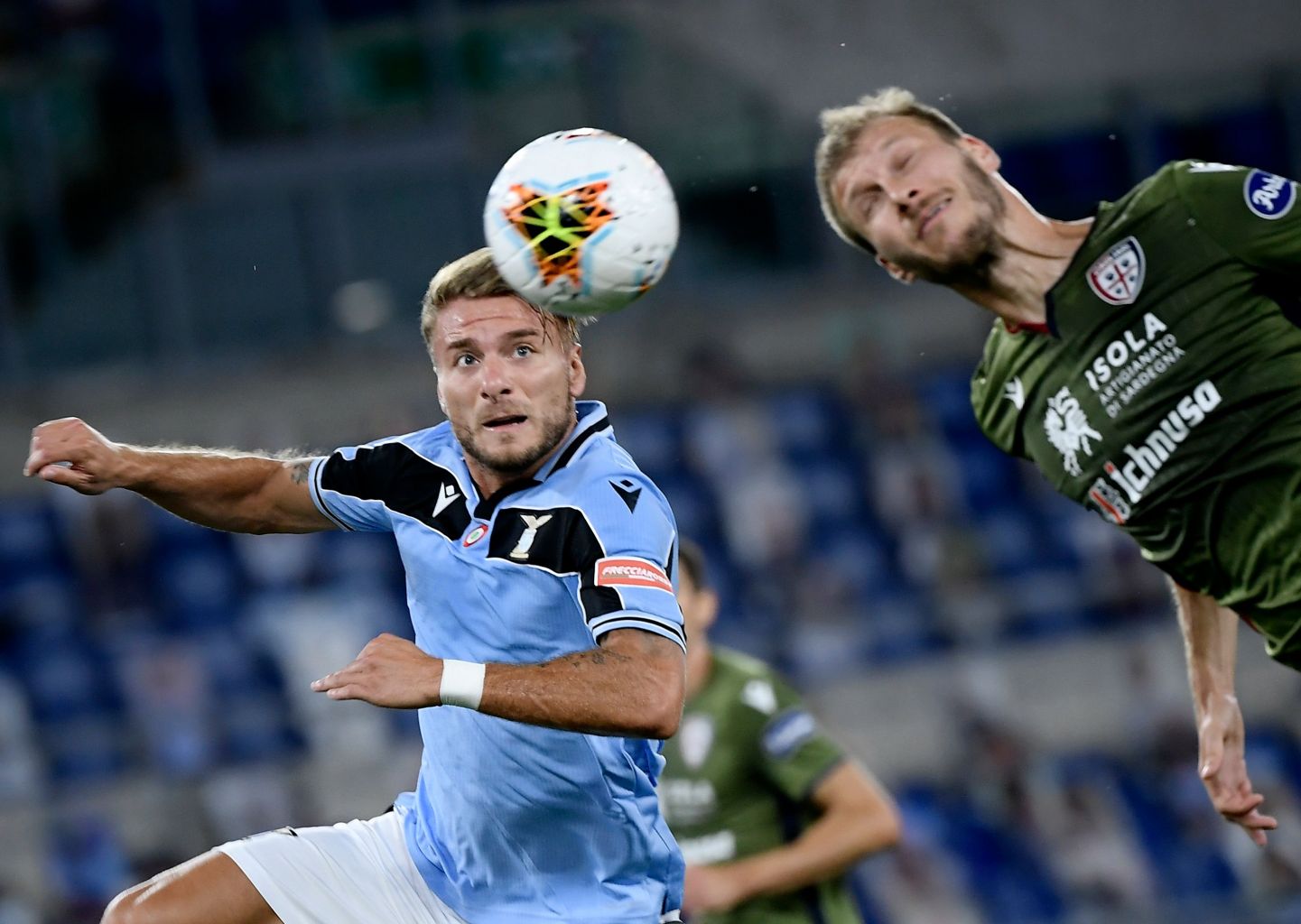 Lazio forward Ciro Immobile (left) vies with Cagliari defender Ragnar Klavan.
