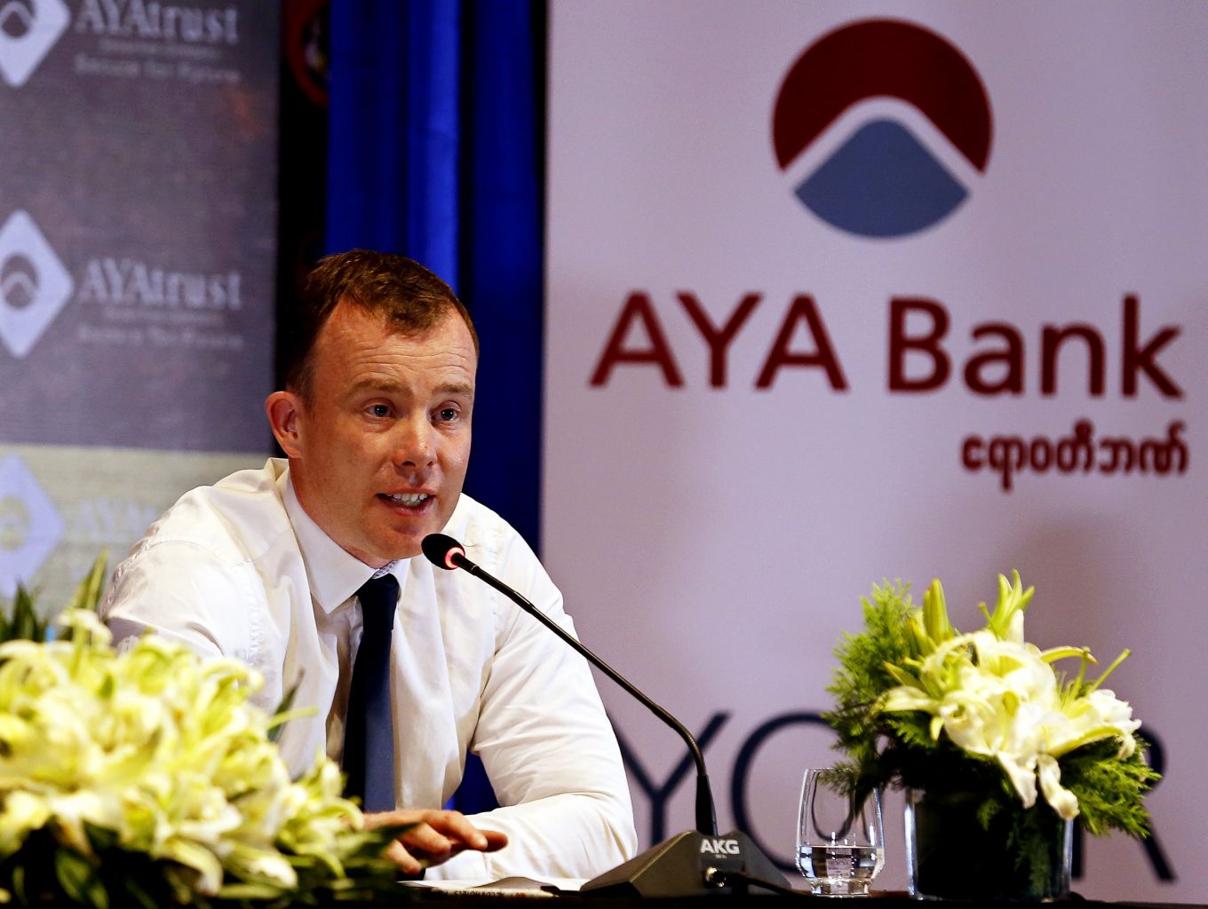 Leeds managing director Angus Kinnear speaking during a press conference in Yangon.