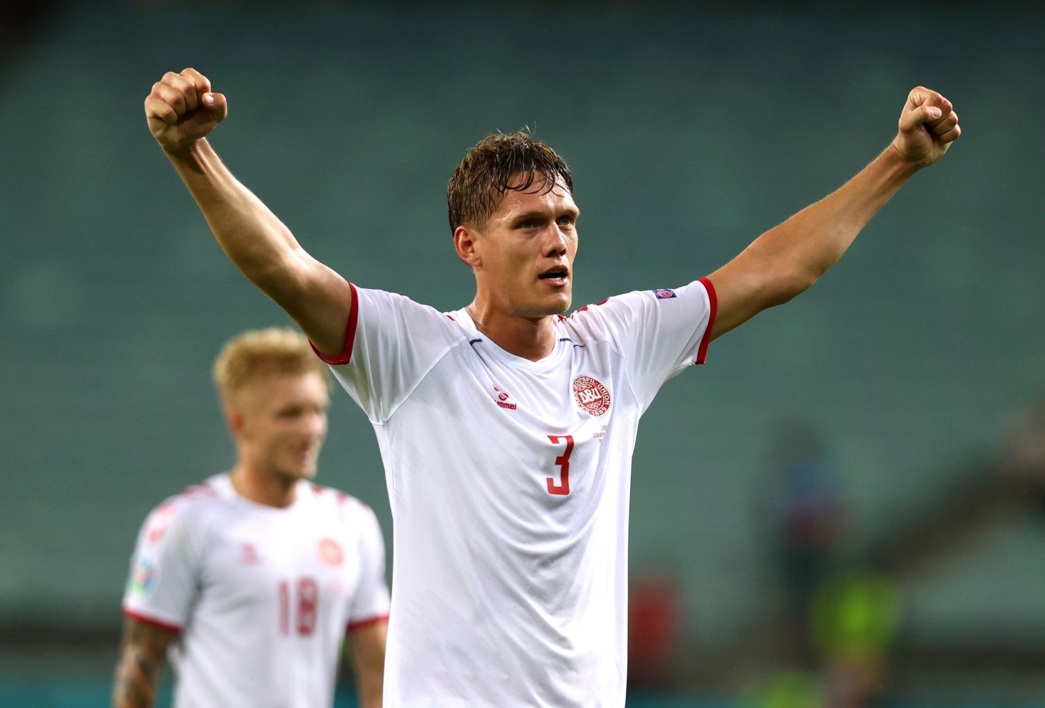 Jannik Vestergaard celebrates after a Denmark match against the Czech Republic during the Euro 2020 tournament.