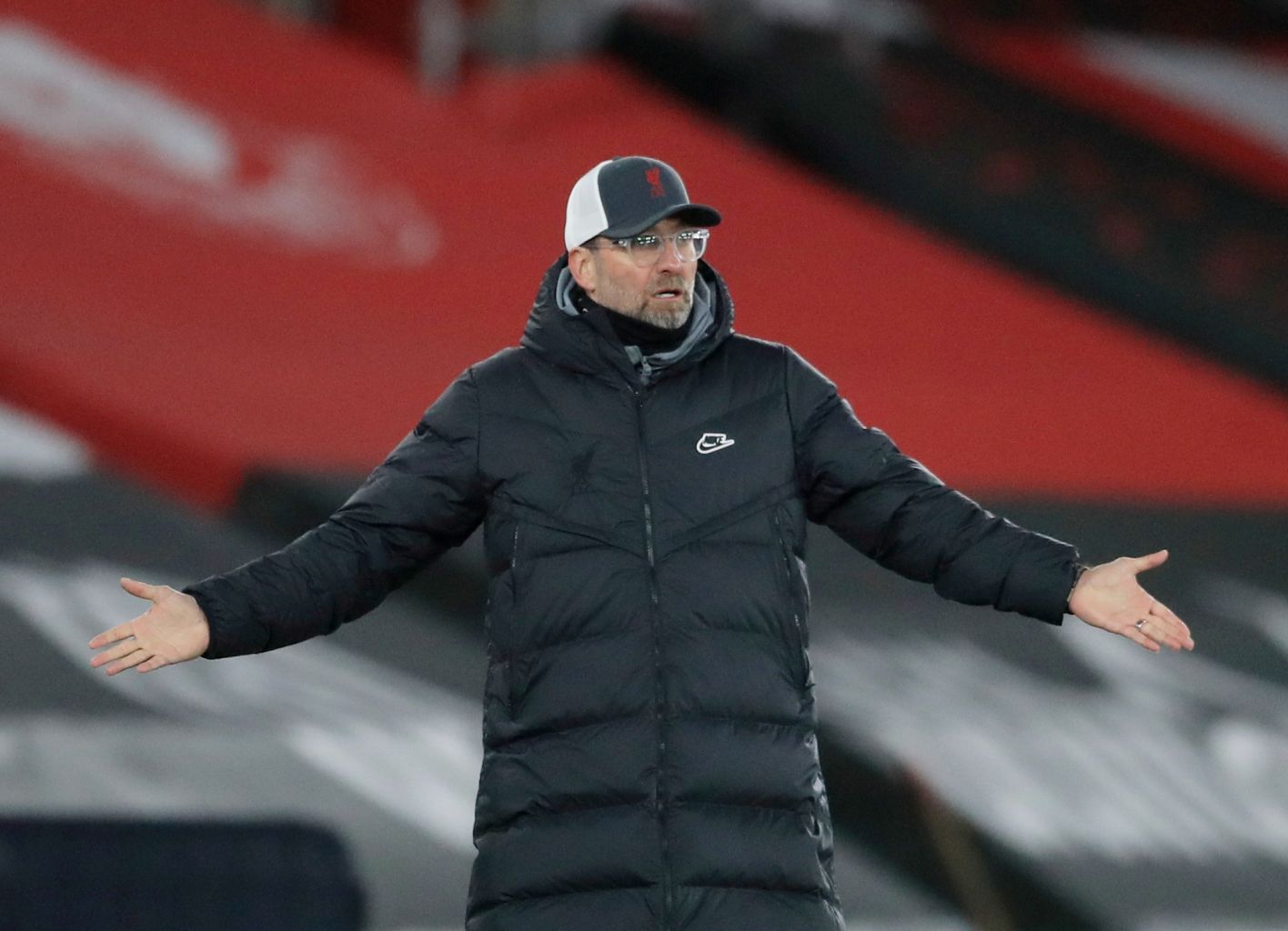 Jurgen Klopp was forced to play midfielders Fabinho and Jordan Henderson in defence in Monday's 1-0 loss at Southampton.