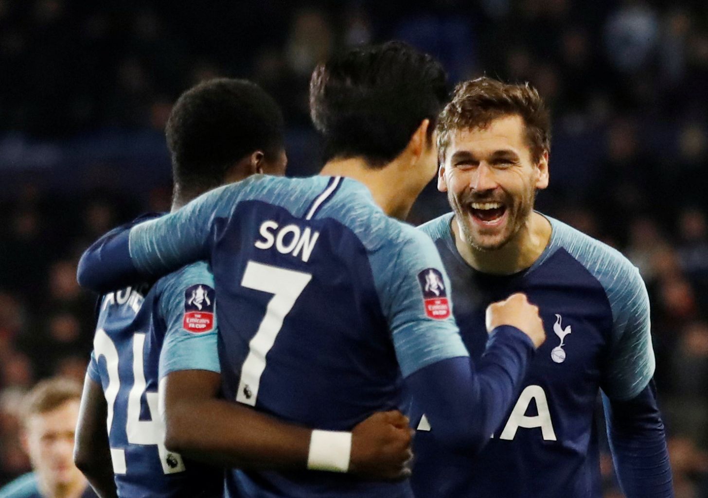 Tottenham's Fernando Llorente celebrates scoring their second goal with team mates.