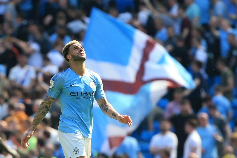 Manchester City's English defender Kyle Walker reacts at the final whistle during the English Premier League football match between Manchester City and Tottenham Hotspur at the Etihad Stadium in Manchester, north west England, on April 20, 2019.