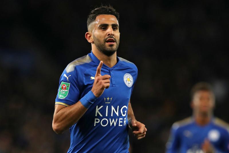 Leicester City's Algerian midfielder Riyad Mahrez celebrates after scoring during the English League Cup fourth round football match between Leicester City and Leeds United at King Power Stadium in Leicester, central England, on Oct 24, 2017.
