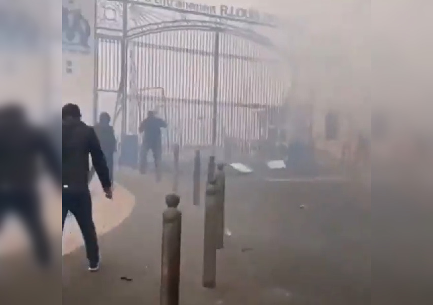 A screenshot from an online video said to show the attack on Marseille's training ground.