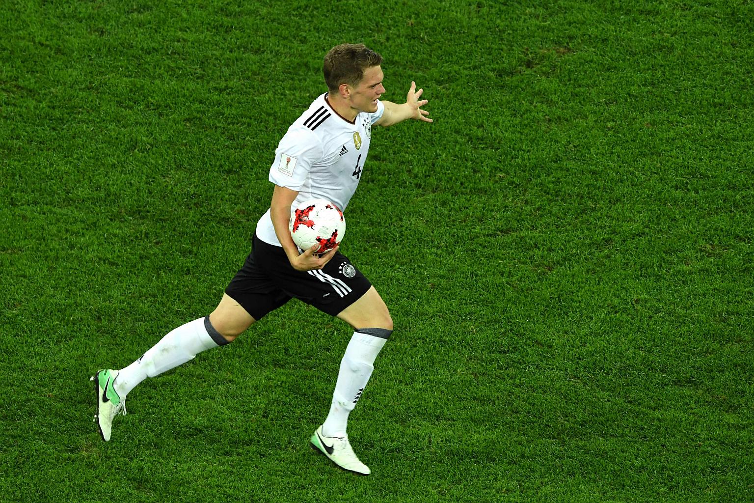 Germany's defender Matthias Ginter celebrates winning the 2017 Confederations Cup final football match between Chile and Germany at the Saint Petersburg Stadium in Saint Petersburg on July 2, 2017.