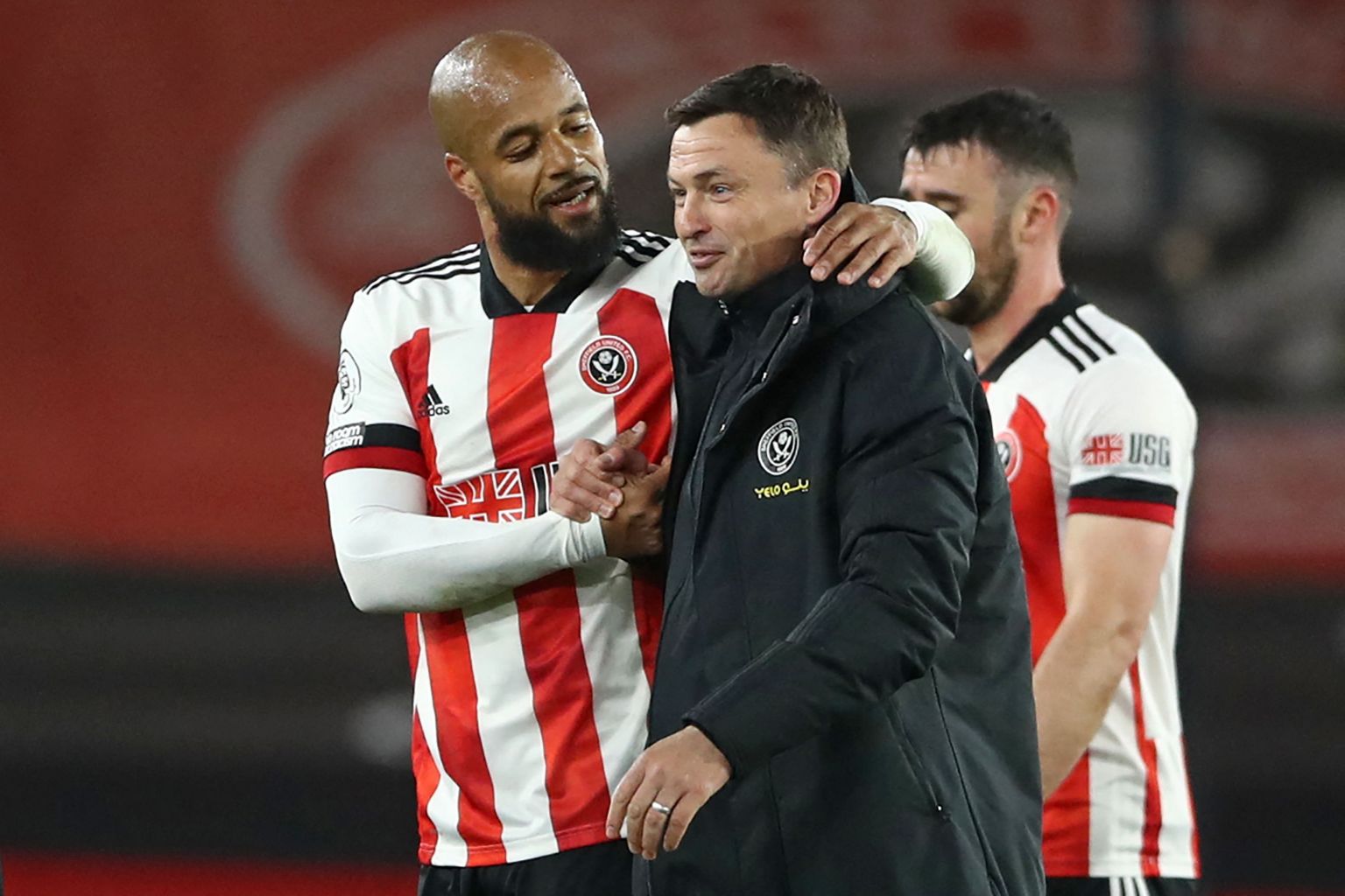 McGoldrick (left) celebrates with Sheffield's Interim manager Paul Heckingbottom on the pitch after the match.
