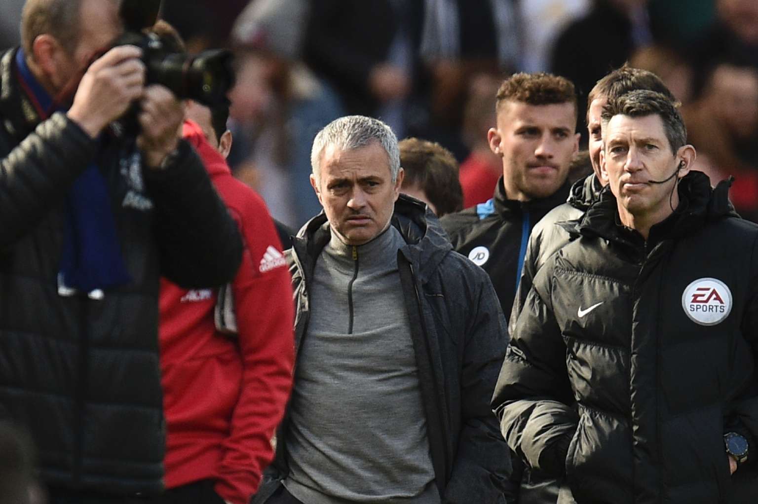 Mourinho (centre) arrives for a match against Bournemouth on March 4, 2017.